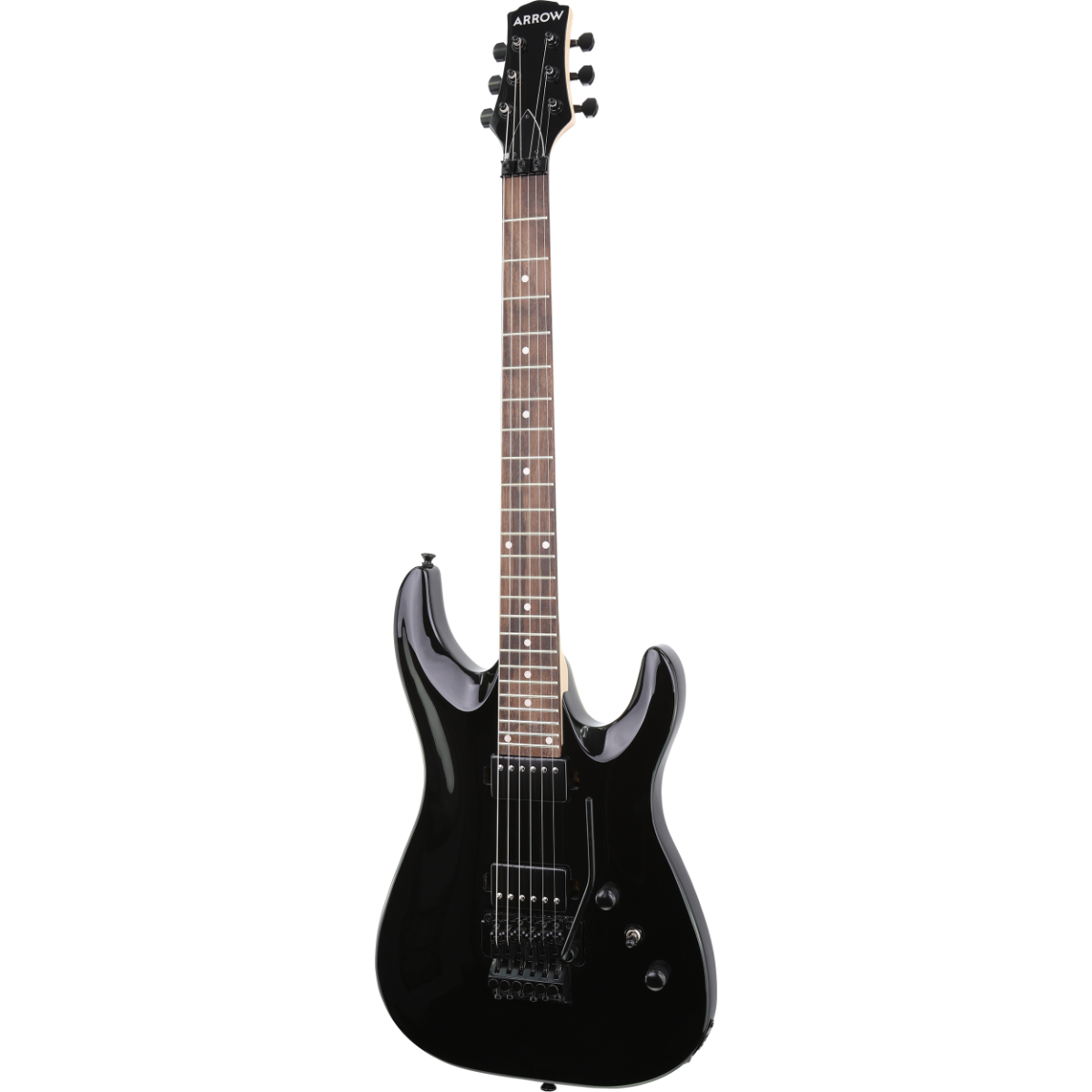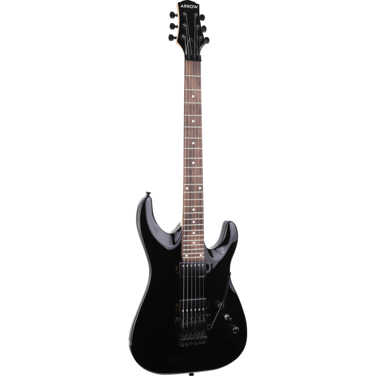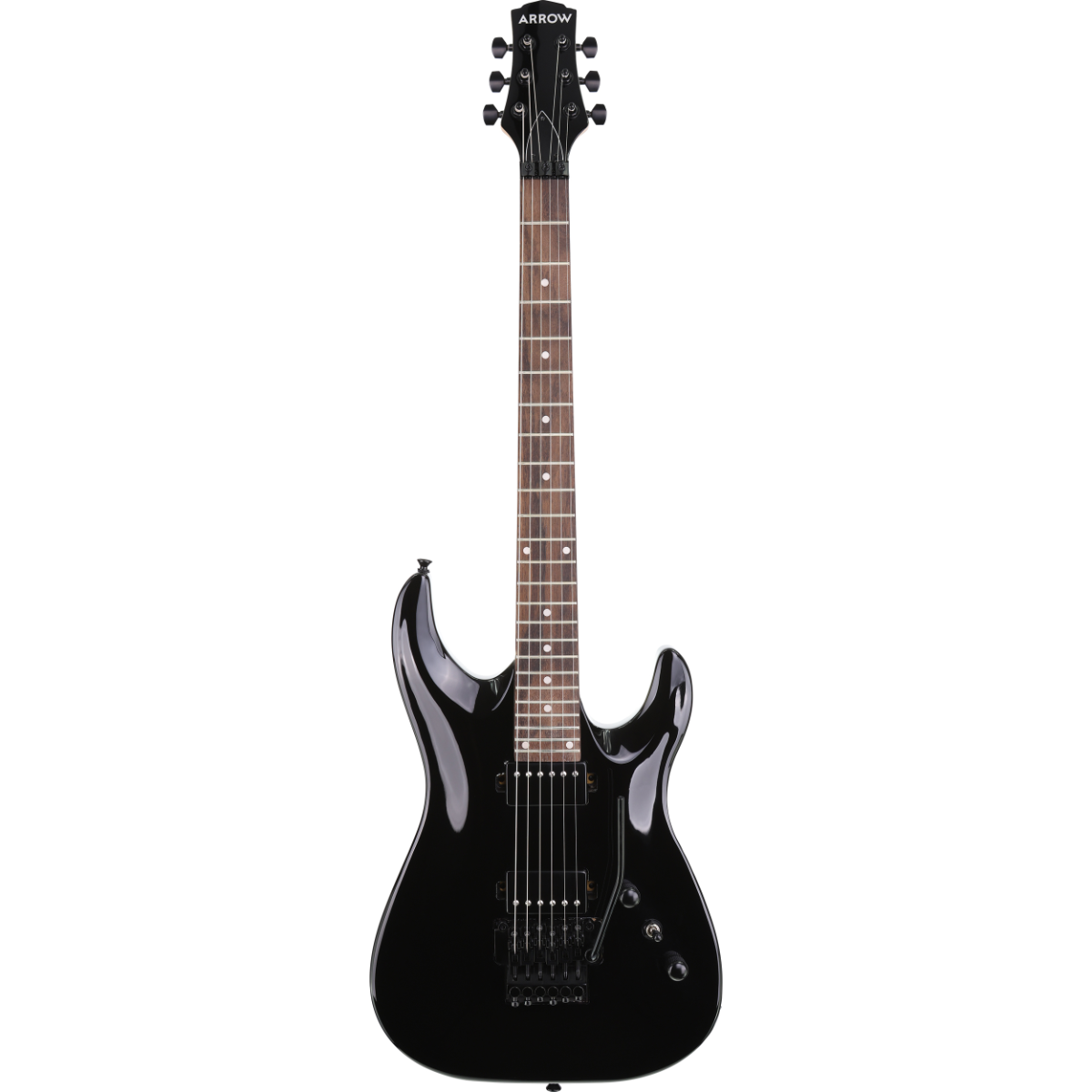 Arrow Antimyth FR je električna gitara dinamičnog i modernog izgleda koja privlači pažnju već na prvi pogled. Njeno lagano tijelo od topole u Superstrat stilu dizajnirano je za udobnost i lakoću sviranja, dok duboki, savremeni izrezi omogućavaju potpuni pristup svim 24 pragovima — savršeno za virtouzne svirače. Par humbucker magneta pruža snažan i izražajan ton, idealan za energične rifove i upečatljive solo dionice. Tremolo most u Floyd Rose stilu nudi odličnu stabilnost štimanja i omogućava izvođenje ekstremnih tehnika poput dive bomb i flutter efekata. Crni hardver daje završni pečat cjelokupnom izgledu i dodatno naglašava odvažan, rockerski karakter ovog instrumenta. Antimyth FR spaja moderan dizajn i punu funkcionalnost, što ga čini pouzdanim partnerom na vašem muzičkom putovanju. Ako su rock i metal vaš prirodni izbor, Antimyth FR je napravljen da ispuni vaša očekivanja — kako na sceni, tako i u studiju.